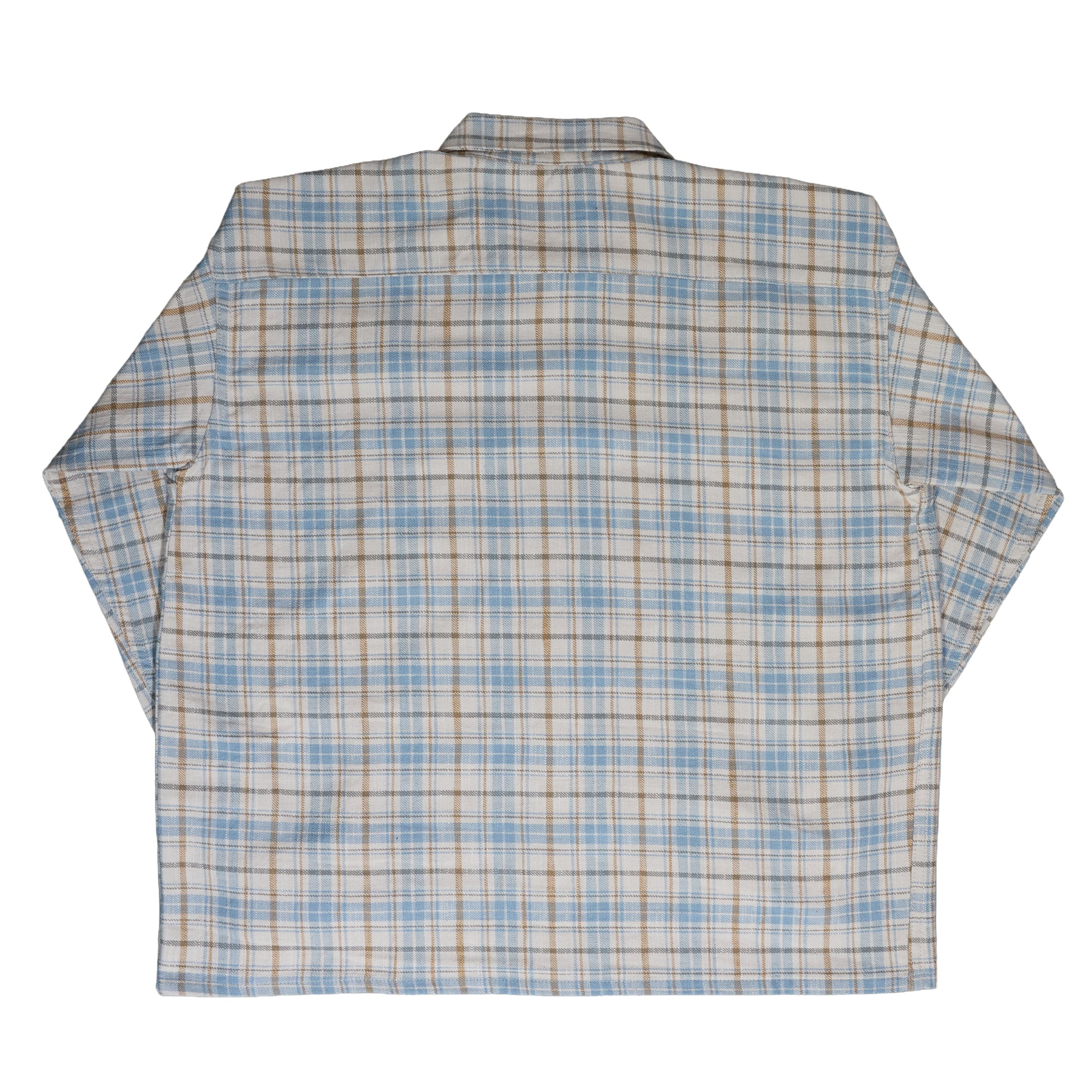 This shirt was inspired by work shirts from the 1950's commonly made by department stores during that era. We replicated the shrinkage and hand feel that these types of shirts would achieve over years of washing. We also kept period specific construction details that make shirts of this era special like the seamless front placket, continuous bound plackets at the sleeves and two front patch pockets with diagonal fabric placement.